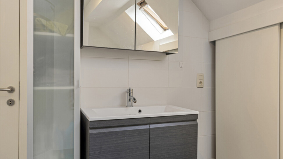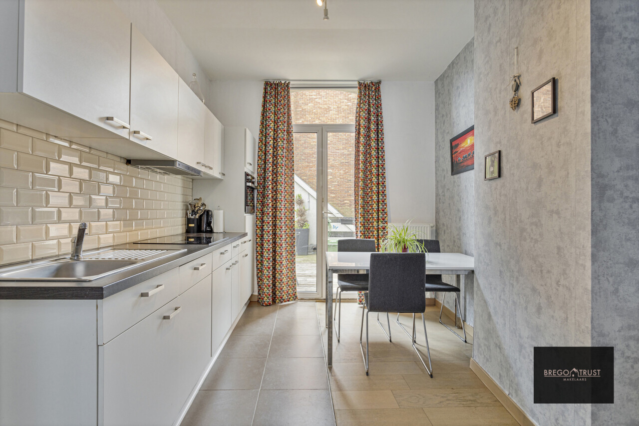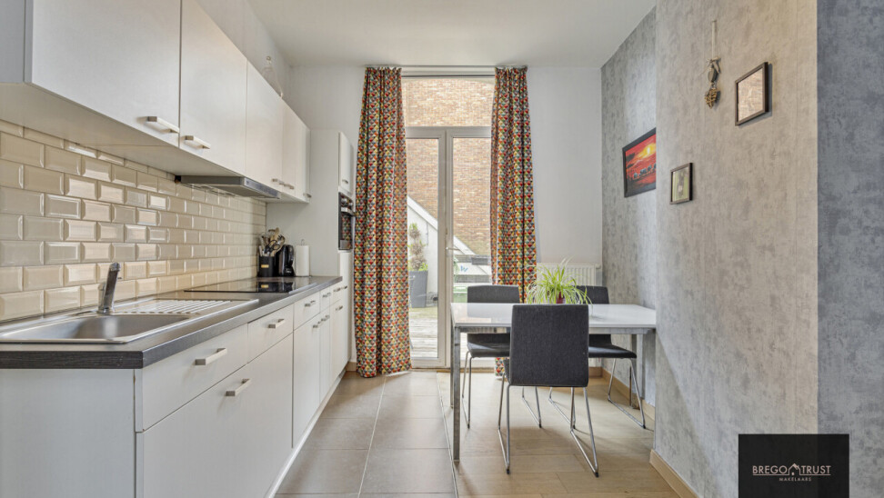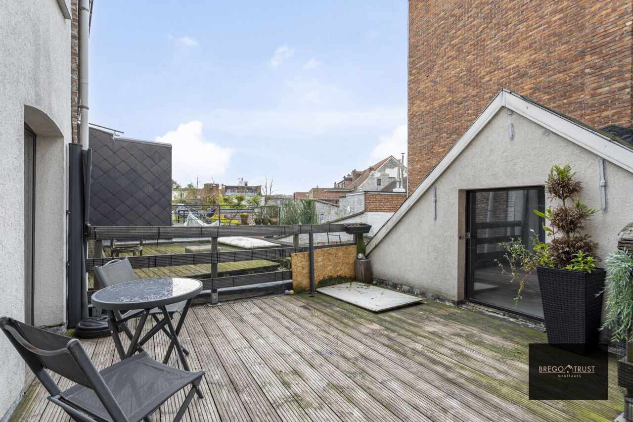 Dit leuk triplex appartement bevindt zich vlakbij de watertoren, winkels, openbaar vervoer en de haven van Turnhout. Via de inkomhal op de begane grond gaan we langs de inkomdeur van het appartement naar de eerste verdieping, waar de woonkamer en de leefkeuken te vinden zijn. Aan de geïnstalleerde keuken grenst een aangenaam terras met ruime berging. De tweede verdieping bestaat uit de grote slaapkamer en de ingerichte badkamer. Via een vaste trap komen we op de tweede verdieping in de tweede slaapkamer. Deze kan ook perfect dienst doen als hobbykamer, bureau of wat u ook maar wenst. Extra troeven: asbestvrij, nieuw dak 2024, conforme elektrische installatie, geen gemeenschappelijke kosten. Vermelde afmetingen/oppervlakten zijn indicatief. Oppervlakten conform EPC.
