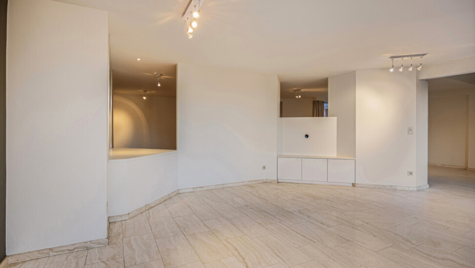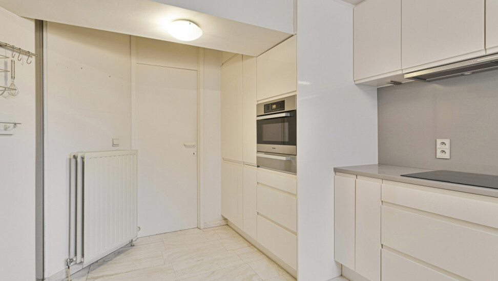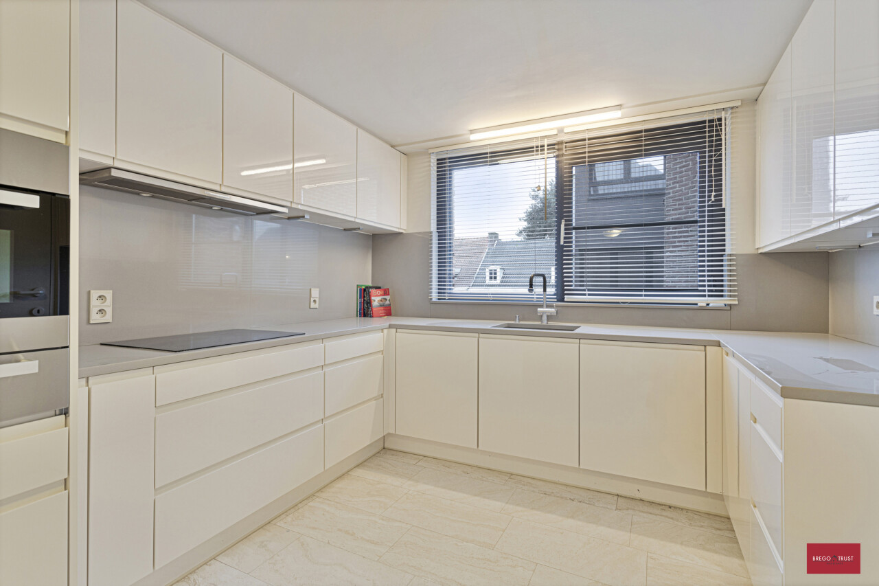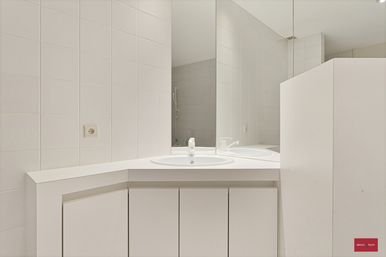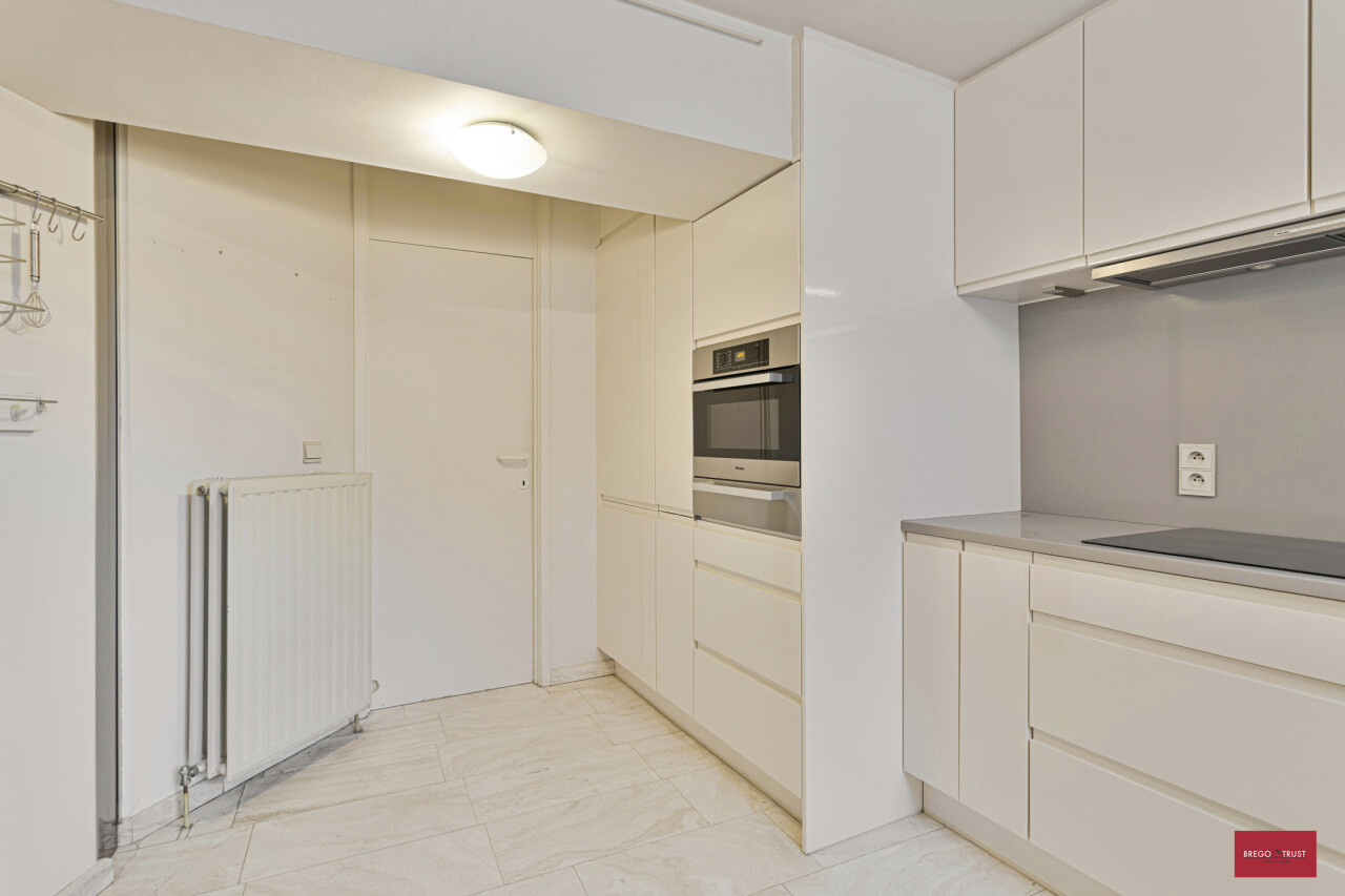 Vooraan het appartement bevind zich het eerste zuid georiënteerd terras. Volledig geïnstalleerde moderne keuken voorzien van kwaliteitstoestellen van Miele met berging en wasruimte. De ruime hoofdslaapkamer beschikt over haar eigen ruime inloopdressing en een gerieflijke ruime badkamer voorzien van een ligbad, douche, dubbele wastafelmeubels, bidet en toilet.