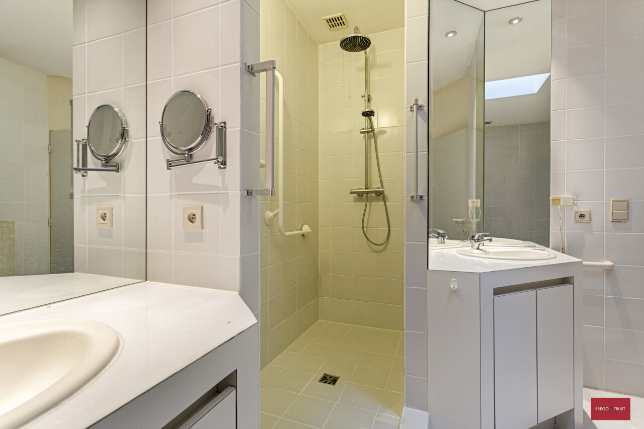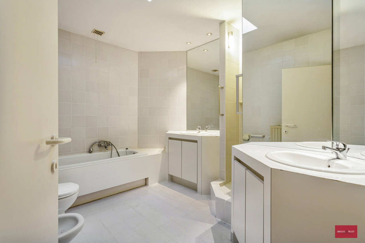 Naastgelegen vinden we een logeerkamer gelegen aan een groot afgesloten achtergelegen dakterras met tuinberging. De riante nachthal beschikt over een praktische bureauhoek en geeft toegang naar nog een tweede riante logeerkamer met naastgelegen ruime badkamer voorzien van ligbad, toilet en dubbel wastafelmeubel. Dit uitzonderlijk groots en stijlvol appartement van ca.290m² kent een zeer aangename indeling waardoor alle leefruimtes sfeervol aanvoelen en een uniek woonkader vormen voor haar bewoners.