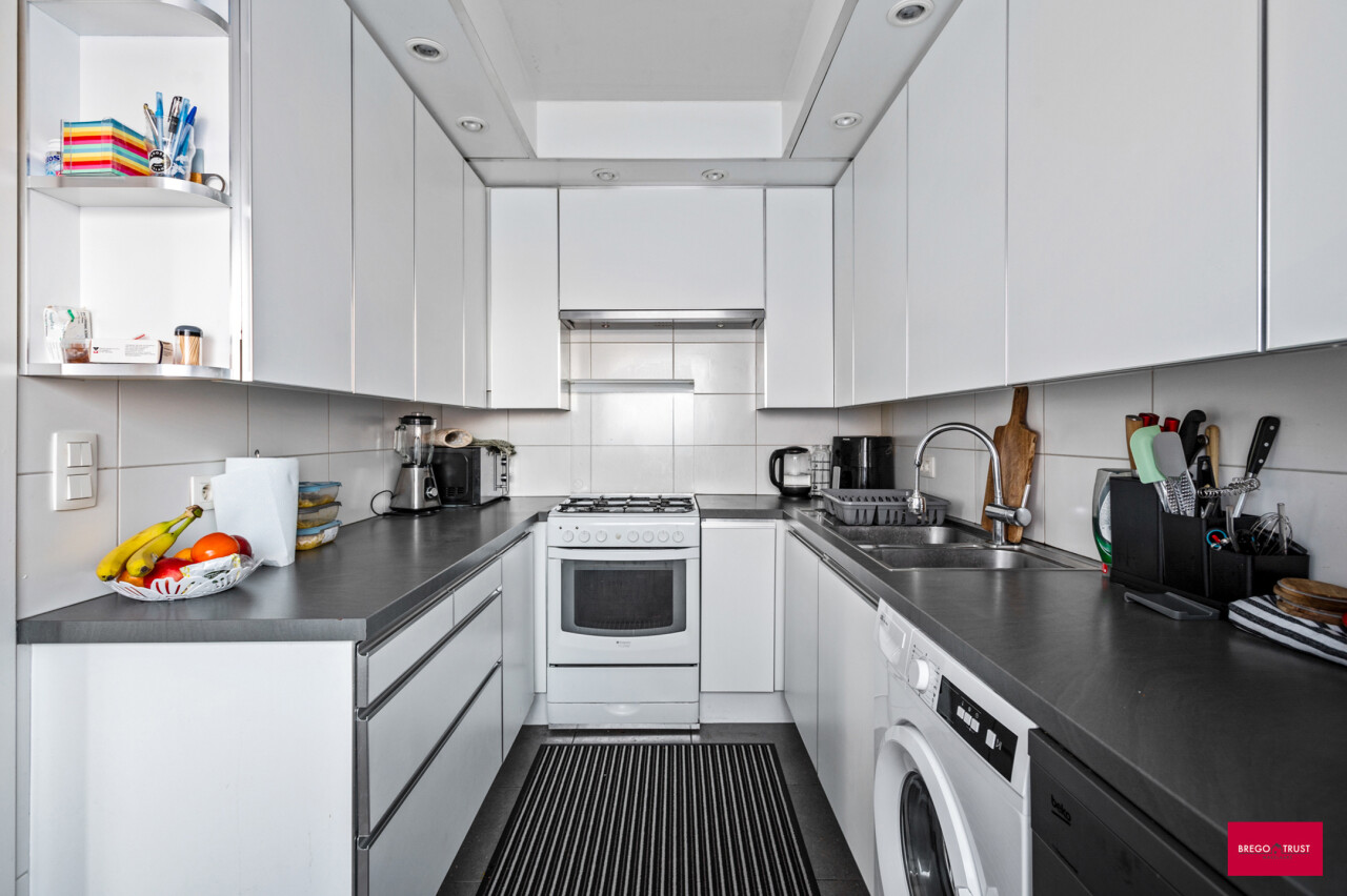 Dit appartement werd recent nog grondig aangepakt: er werd nieuwe hoogrendementsbeglazing geplaatst, een nieuwe verwarmingsketel geïnstalleerd, de elektriciteit is conform, enzovoort. De indeling is als volgt: inkomhal met (gasten)toilet, woonkamer, keuken, nachthal, 2 slaapkamers, balkon. Achterliggende garagebox verplicht bij aan te kopen voor 20.000,- EUR. Momenteel is het appartement verhuurd aan een zeer correcte huurder die het appartement bovendien zeer netjes onderhoudt. Dus ook een kans voor u als investeerder! Extra's: zeer gunstig epc, goedgekeurde elektrische installatie, ...