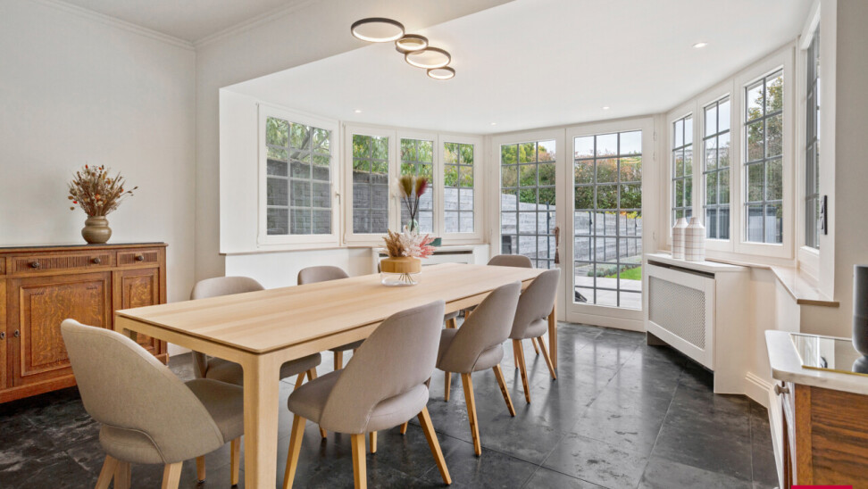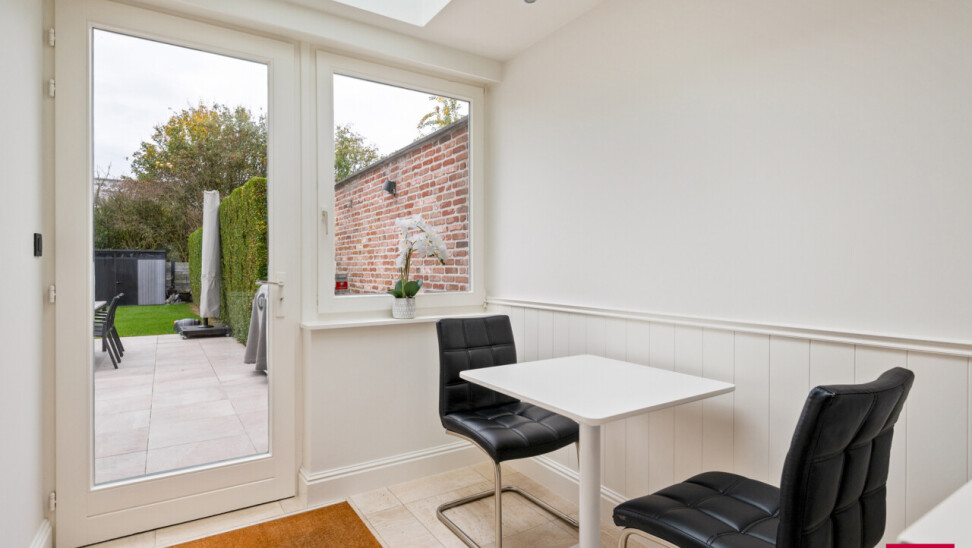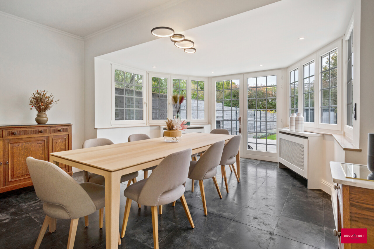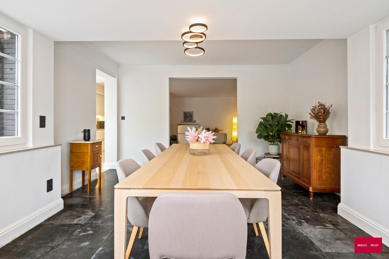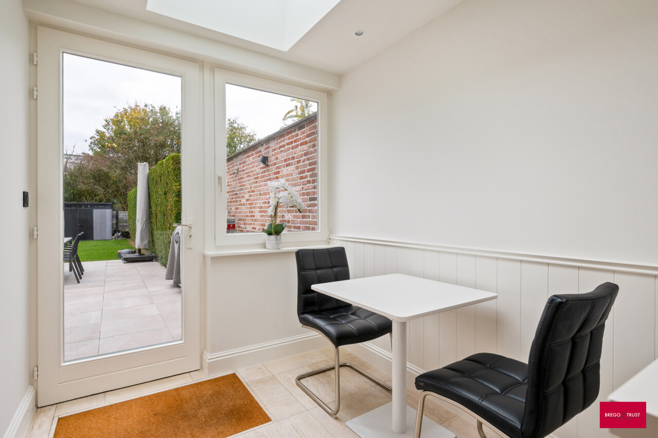 Ontdek deze prachtige en vernieuwde stadswoning met 7 (slaap)kamers en een heerlijke, zonnige zuidtuin. De woning combineert authentieke charme met modern wooncomfort en beschikt bovendien over een inpandige garage met oprit. Bij het binnenkomen word je verwelkomd in de stijlvolle inkomhal met gastentoilet en een imposante ronde trappenhal, die meteen het karakter van de woning onderstreept. De gezellige leefruimte met halfopen, volledig geïnstalleerde keuken en eethoek geeft uit op de lichtrijke tuinkamer, waar het heerlijk vertoeven is met uitzicht op de zonnige stadstuin – perfect voor sfeervolle zomeravonden. Op de eerste verdieping, bereikbaar via de royale trappenhal, bevinden zich vier ruime slaapkamers en een comfortabele badkamer met inloopdouche, toilet en wastafelmeubel. De hoofdslaapkamer beschikt bovendien over een ingebouwde kastenwand. De tweede verdieping biedt nog drie extra kamers, ideaal als hobbyruimte, werkplek of extra slaapkamers, met evt. de mogelijkheid voor een extra badkamer. Deze verzorgde en uiterst veelzijdige stadswoning onderscheidt zich door haar royale binnenruimte, zuidgerichte tuin, gunstige ligging nabij het ziekenhuis, stadspark, E34 en ring, en op wandelafstand van het centrum. De woning beschikt bovendien al over een energielabel B. Kortom: een instapklare, karaktervolle stadswoning met veel ruimte, licht en mogelijkheden – ideaal voor wie royaal comfortabel en centraal wil wonen binnen de ring met alle voorzieningen zoals, scholen, winkels, stadspark, ziekenhuis, wandel - fietsroutes en sportmogelijkheden in de directe omgeving. Vermelde afmetingen/oppervlakten zijn steeds indicatief. Oppervlakten conform EPC