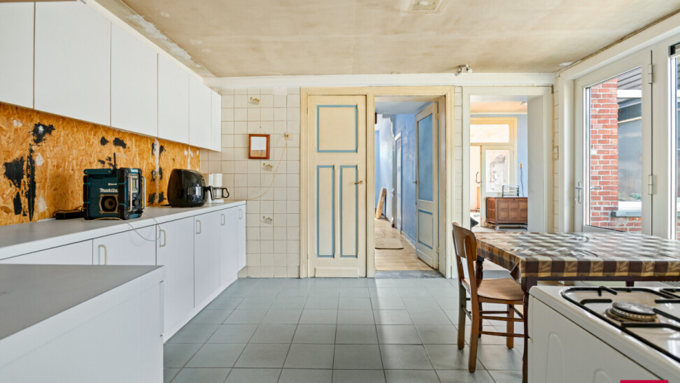 Te renoveren eengezinswoning te Arendonk. Op zoek naar een tof renovatieproject met potentieel? Twijfel dan niet om een bezichtiging in te plannen! Op het gelijkvloers vindt u een royale inkomhal, woonkamer, aparte eetkamer, keuken en badkamer. De woning beschikt bovendien over een kelder voor extra bergruimte. Op de eerste verdieping zijn er drie volwaardige slaapkamers, ideaal voor een gezin of voor wie extra ruimte wenst voor hobby’s of een bureau. Achteraan ligt een tuin waar u in alle rust en privacy kan ontspannen. Technisch is er reeds een mooie basis voorzien: zonnepanelen en een warmtepomp zorgen voor energiezuinige mogelijkheden in de toekomst. Deze woning is onderworpen aan de renovatieplicht – meer info via vlaanderen.be. Voor mogelijke premies kan u eveneens terecht op vlaanderen.be. Vermelde afmetingen/oppervlakten zijn indicatief. Oppervlakten conform EPC.