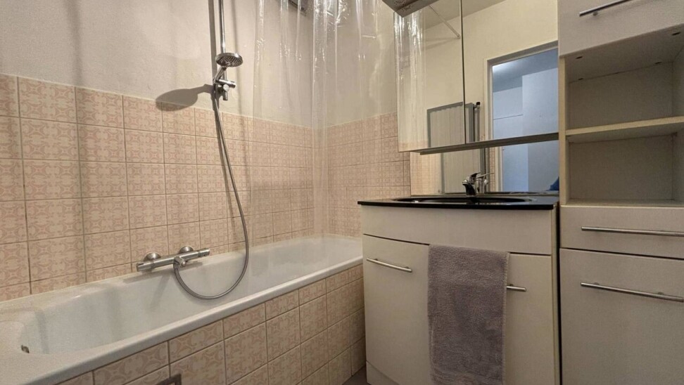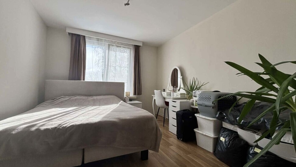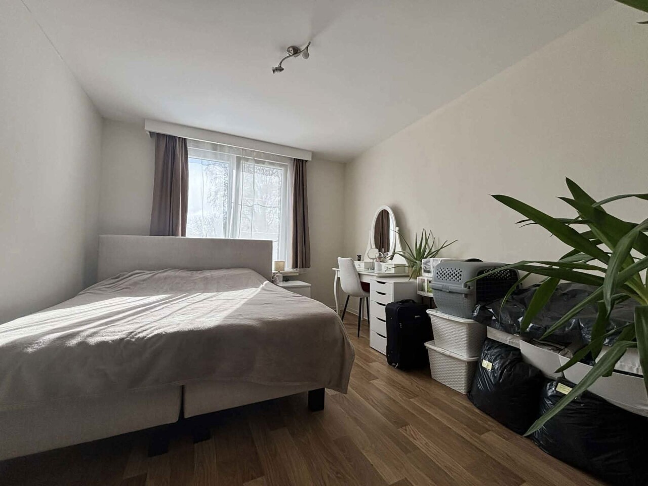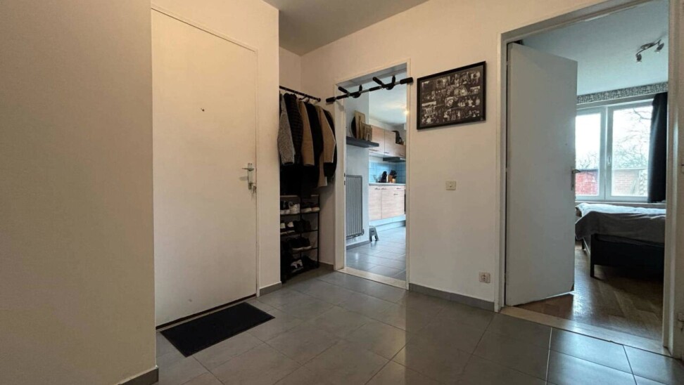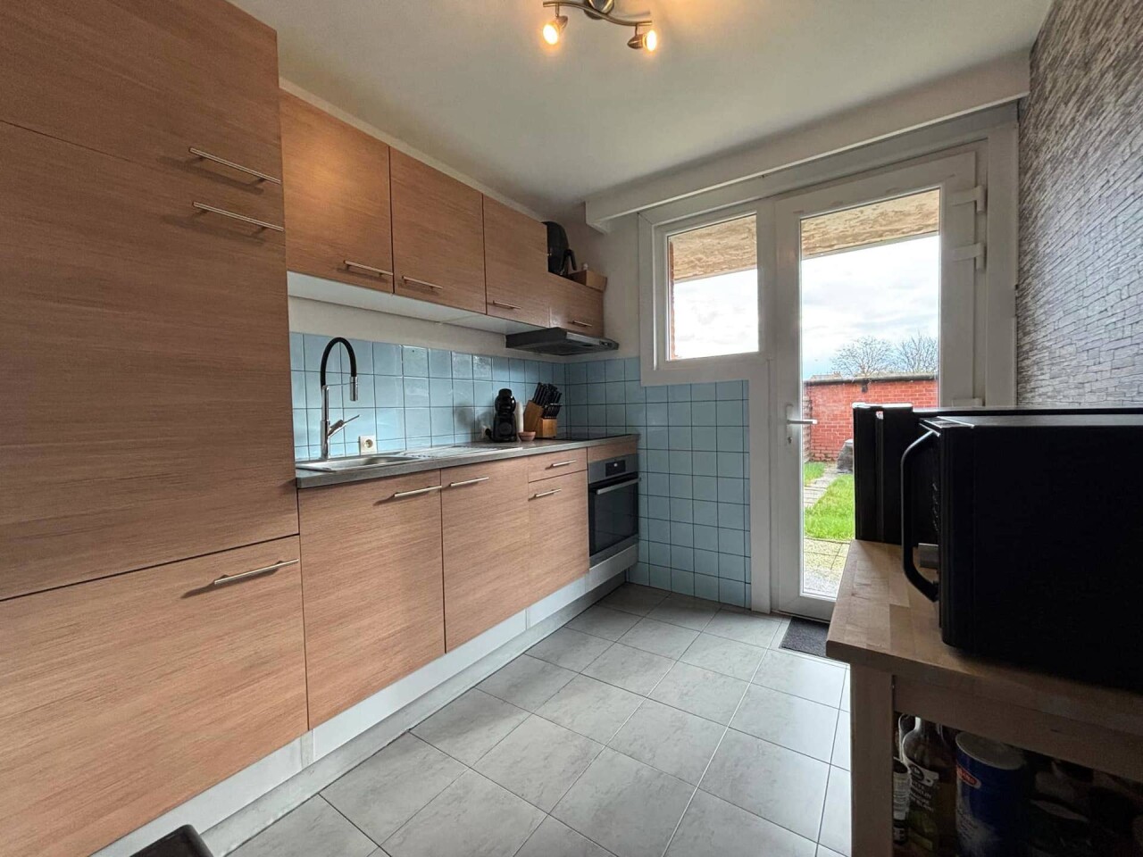 Gelijkvloers éénslaapkamer appartement met garage & tuin. entree, living, keuken met toestellen (koelkast, oven, gas kookvuur, dampkap).Badkamer (ligbad) en apart toilet. één slaapkamer. Tuin en garagebox. Geen huisdieren.