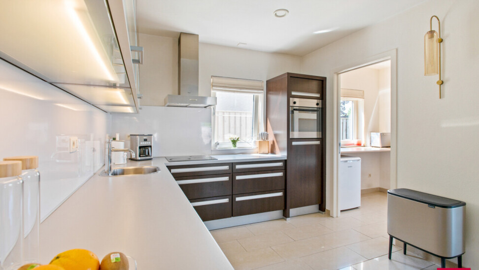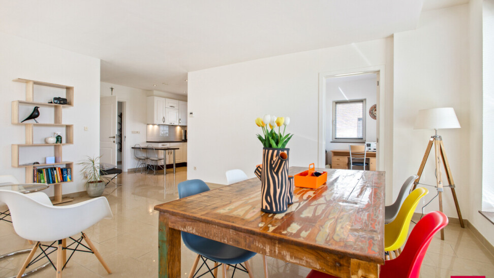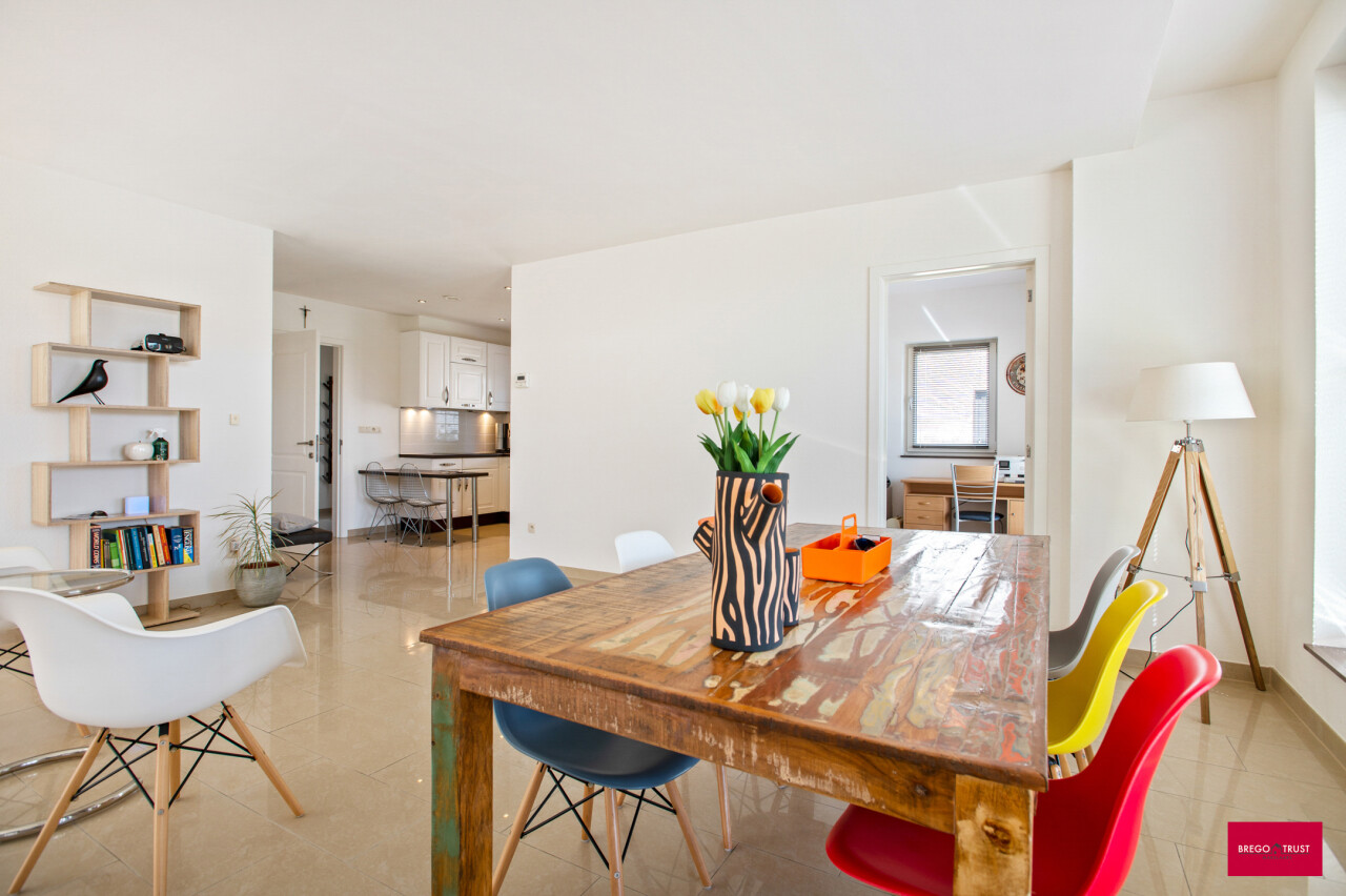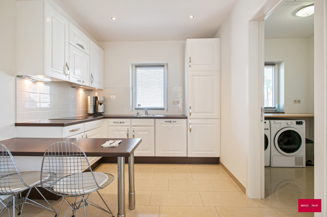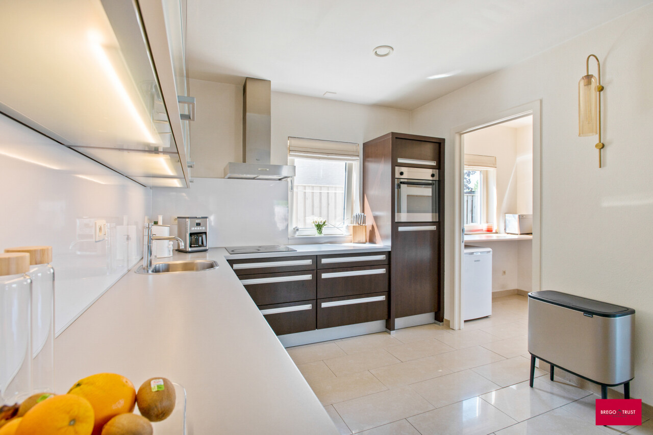 Aan de voorzijde stappen we binnen in de open keuken die naadloos overgaat in de lichtrijke leefruimte met hoge plafonds die het ruimtegevoel extra versterken. Aansluitend vind je een praktische bijkeuken, een bureau en een comfortabele slaapkamer met stijlvolle ensuite badkamer. Alles gelijkvloers en uiterst praktisch ingericht.