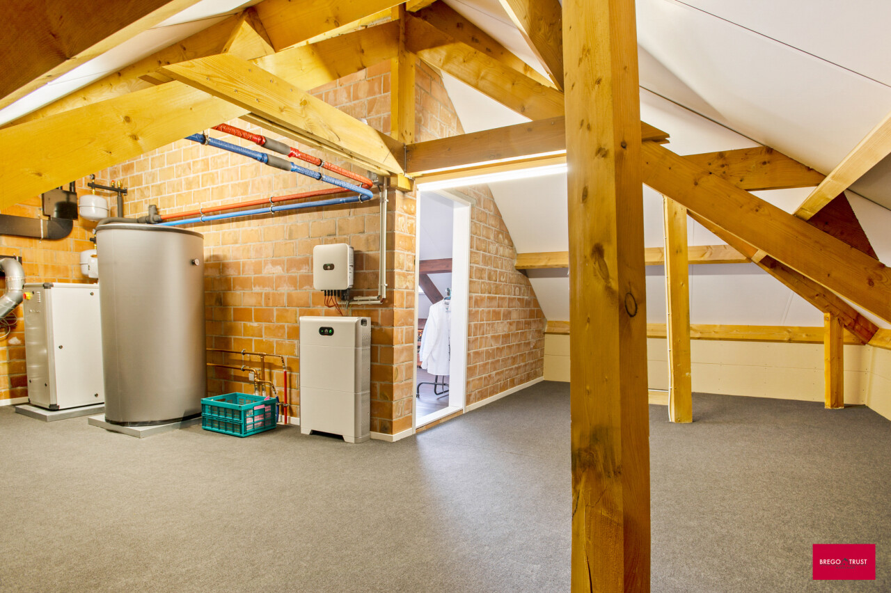 Technisch is deze woning volledig klaar voor de toekomst. Ze is geheel elektrisch en voorzien van geothermische verwarming met passieve koeling. Dit systeem zorgt voor een aangenaam binnenklimaat in elk seizoen. De warmtepompboiler, zonnepanelen met een vermogen van 6.970 Wp en een thuisbatterij van 10 kWh dragen bij aan de uitstekende energieprestatie van slechts 36 kWh/m². Dit alles zorgt voor een laag maandelijks energieverbruik.