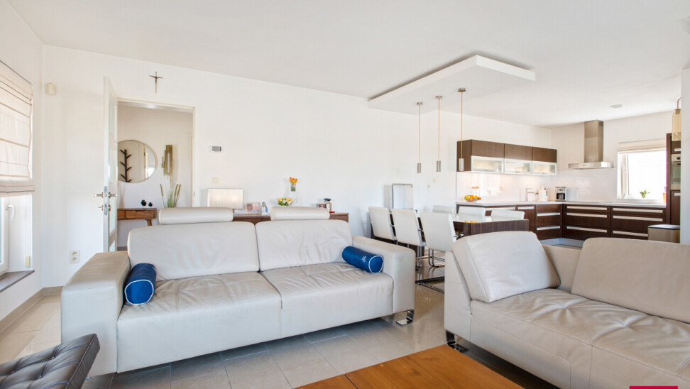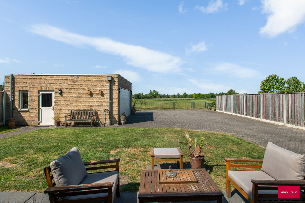 Buiten word je beloond met een prachtig, vrij uitzicht over het omliggende landschap. Hier geniet je in alle privacy van rust en ruimte. De dubbele garage van 35 m² biedt plaats aan twee wagens en extra opslag. Bovendien zijn er nog extra troeven zoals een regenwaterput van 10.000 liter, een alarmsysteem en airconditioning.