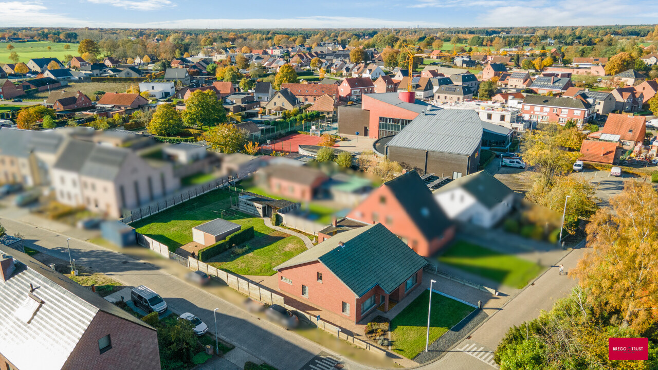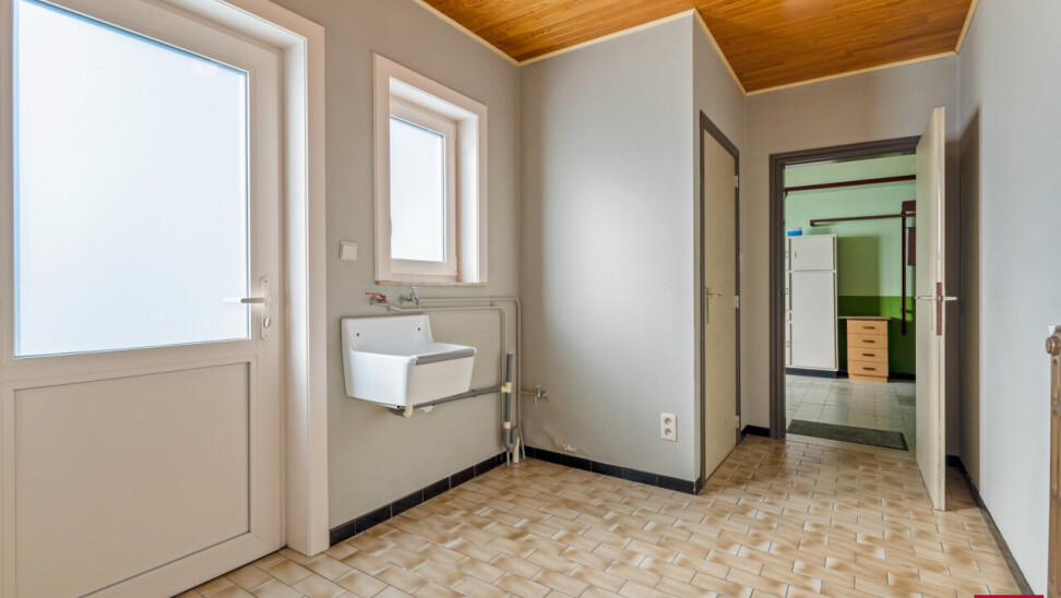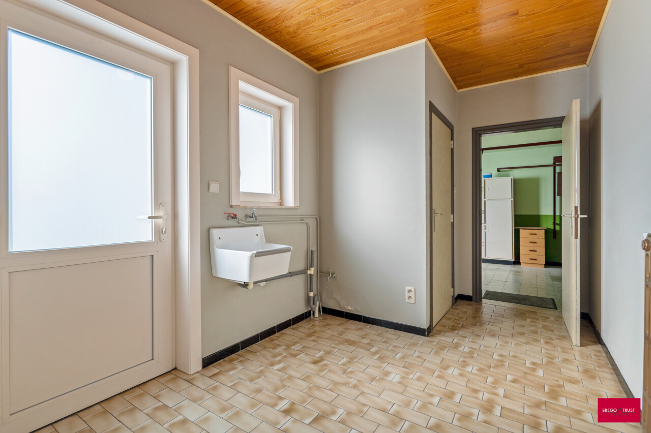 Bent u op zoek naar een degelijke woning met veel potentieel en ruimte om uw eigen stijl te realiseren? Dan is deze praktische grote gelijkvloerse gezinswoning precies wat u zoekt. Gelegen op een perceel van ca. 1.195 m² met een gunstige zuidwestoriëntatie, geniet u hier van een rustige en aangename woonomgeving in hartje Schoonbroek. Achterliggend bevindt zich bovendien een potentiële bouwkavel voor losbouw mits het bekomen van een opsplitsingsvergunning, van ca. 550 m², wat deze eigendom extra interessant maakt voor wie op zoek is naar toekomstmogelijkheden of een investering. Deze ruime te moderniseren woning heeft een praktische gelijkvloerse indeling met een lichtrijke woonkamer en een grote geïnstalleerde moderne keuken met voldoende ruimte voor een eethoek en voorzien van de nodige apparatuur. Aansluitend bevindt zich een gezellige veranda, waar u het hele jaar door van de tuin kunt genieten. Verder beschikt het gelijkvloers over drie goede slaapkamers, een badkamer, gastentoilet, handige bijkeuken en een wasruimte — alles binnen handbereik en optimaal ingedeeld. Deze woning beschikt momenteel over een energielabel F en valt bijgevolg onder de renovatieverplichting maar is redelijk eenvoudig bijkomend te isoleren. Alle ramen werden reeds vernieuwd alsook nieuwe dakbekleding. De ruime inpandige garage met sectionaalpoort biedt extra bergruimte en directe toegang tot de woning. De zeer ruime zolderverdieping van ca.120 m² bereikbaar via vlizotrap, biedt nog meerdere mogelijkheden: voor extra kamers tot een hobbyruimte, bureau of ontspanningsruimte. Deze degelijke en goed onderhouden eengezinswoning biedt leuke en haalbare opfrissingsmogelijkheden om er een nieuwe thuis van te maken. De zeer ruime zuid gerichte tuin met terras heeft de mogelijkheid, mits afsplitsingsvergunning , tot het creëren van een extra bouwperceel. Neem contact op voor meer informatie of een bezichtiging! Vermelde afmetingen/oppervlakten zijn indicatief. Oppervlakten conform EPC.