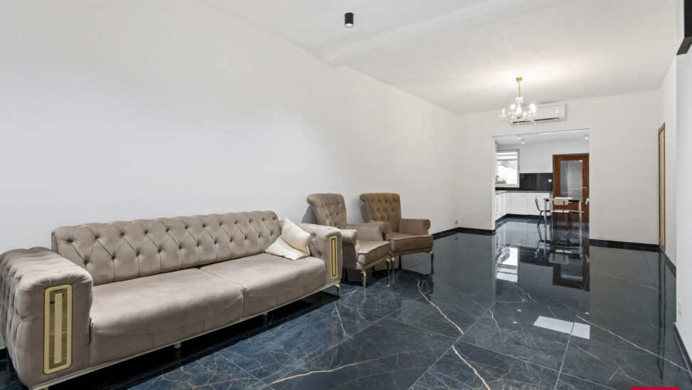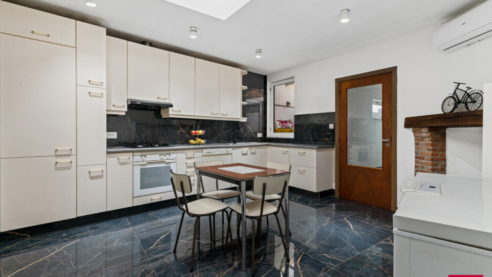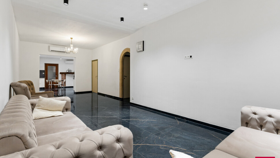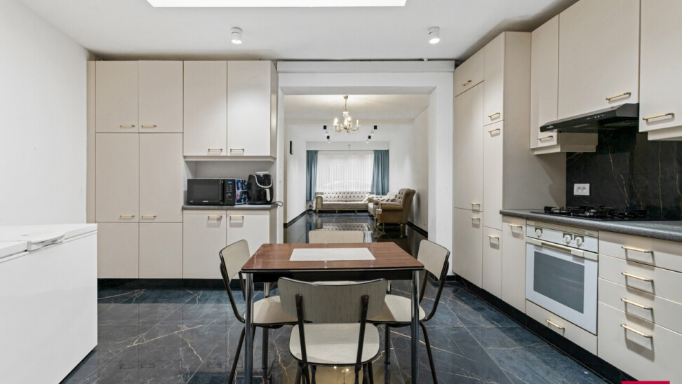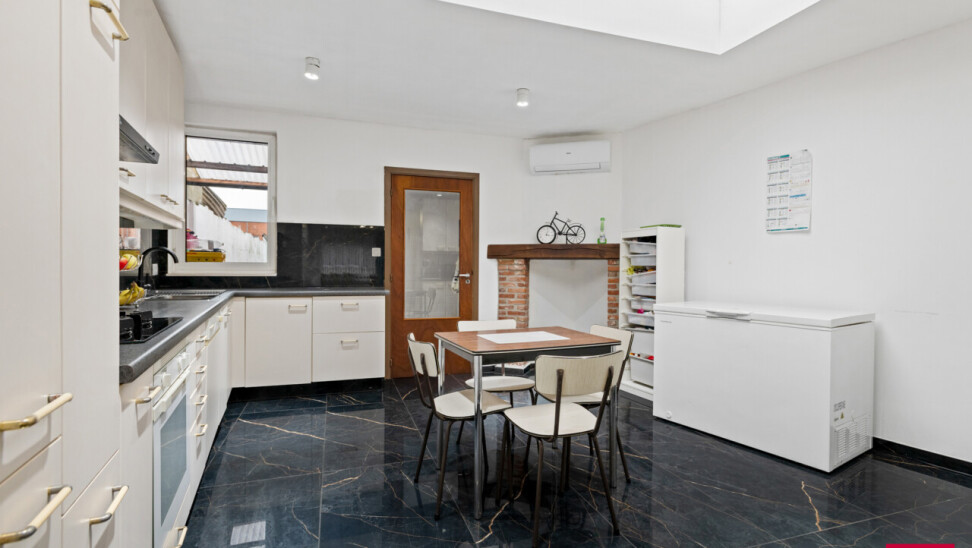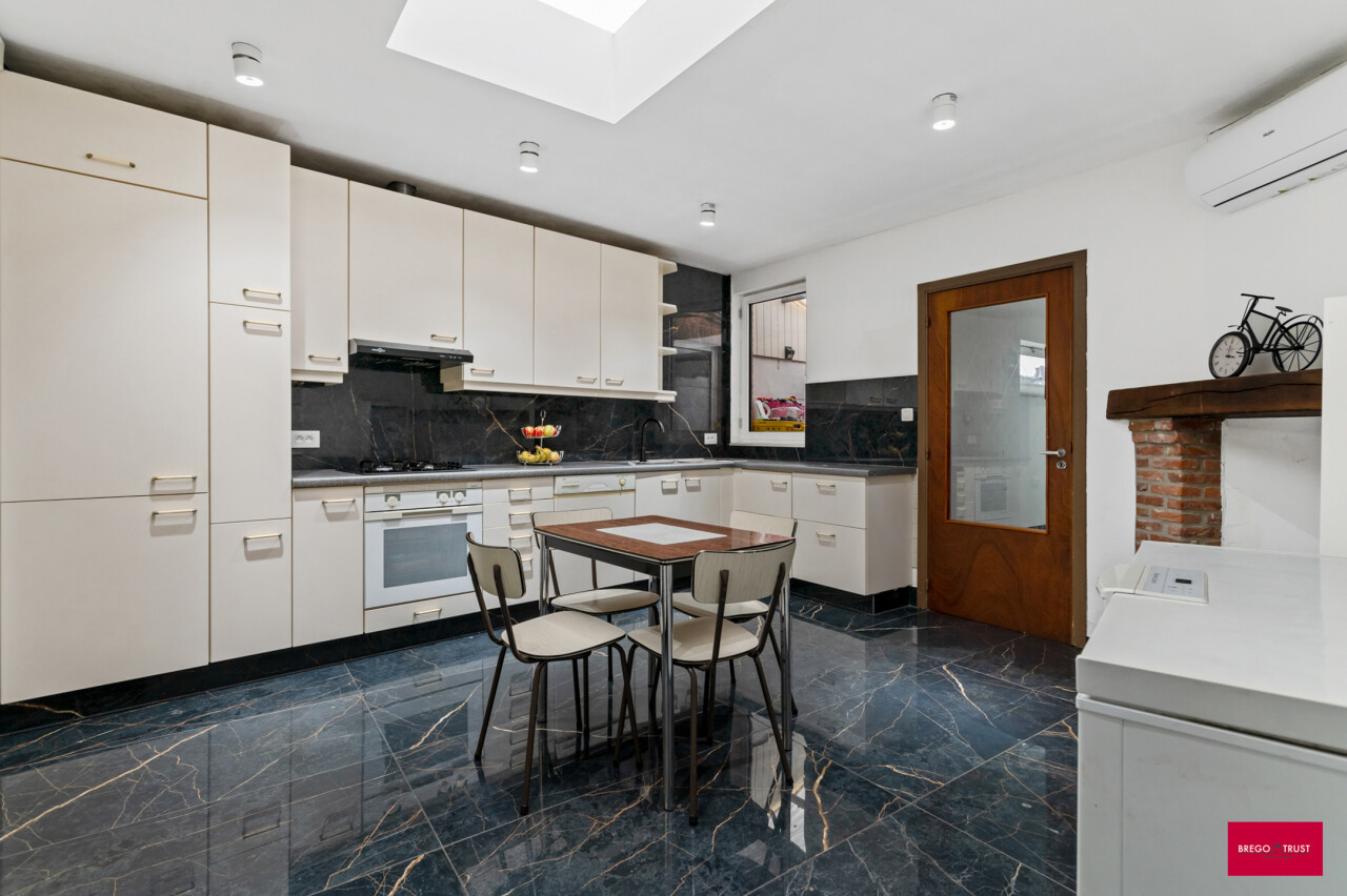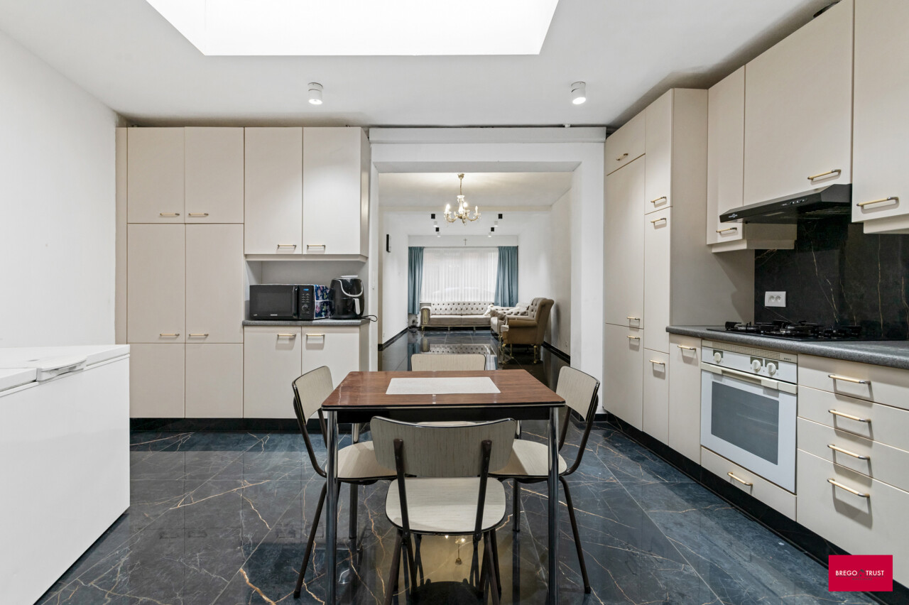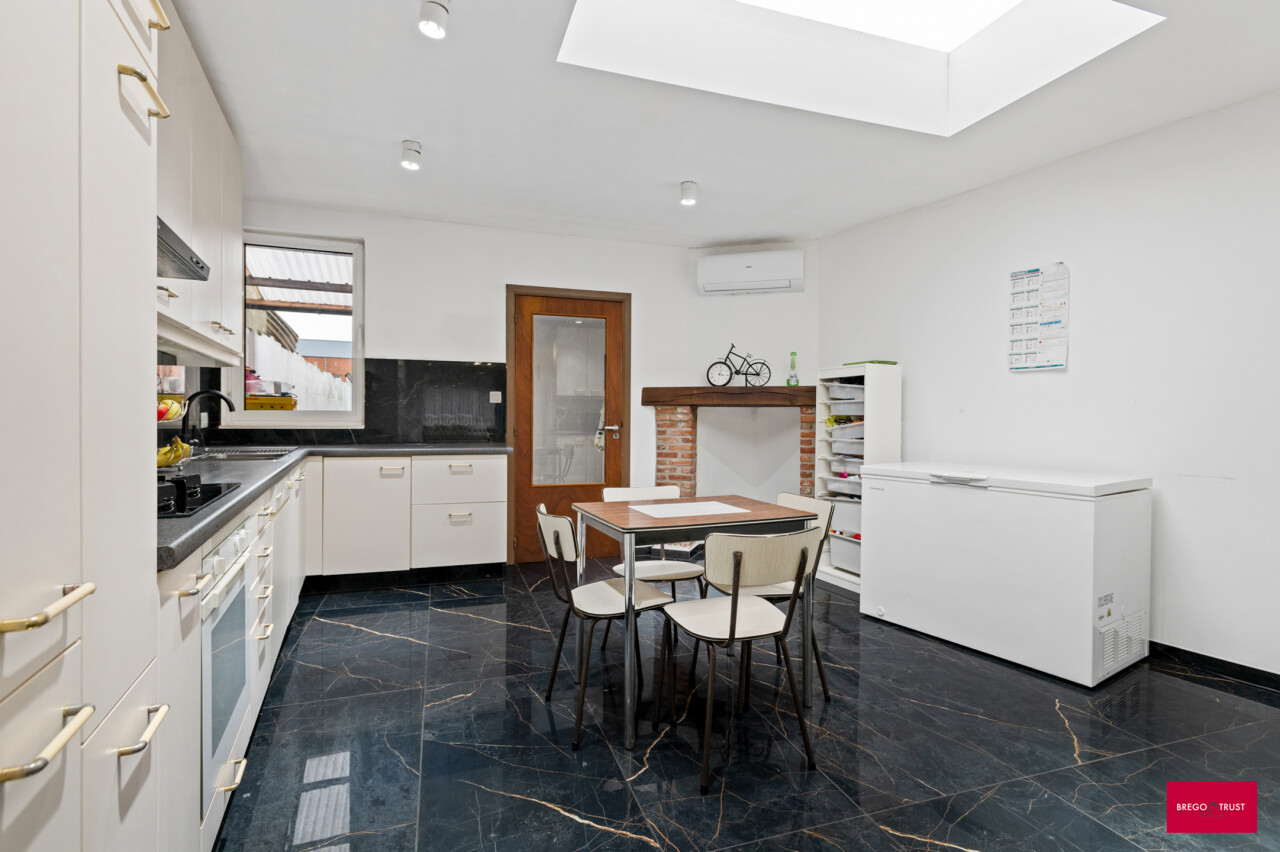 Instapklare, energiezuinige woning met diepe tuin en garage. Bij het binnenkomen verwelkomt de ruime inkomhal je met een stijlvolle vloer die doorloopt in de leefruimte en keuken. De lichtrijke woonkamer biedt plaats voor zowel een gezellige zithoek als een volwaardig eetgedeelte. De aangrenzende leefkeuken beschikt over veel kastruimte en is ingericht met het oog op gebruiksgemak. Achteraan de woning bevindt zich een praktische tussenhal met toegang tot de badkamer, een apart gastentoilet en een gelijkvloerse slaapkamer. Dit maakt de woning zeer geschikt voor wie graag alle nodige functies op het gelijkvloers heeft, of op zoek is naar een bureau-, logeer- of hobbyruimte. Op de eerste verdieping bevinden zich nog twee ruime, volwaardige slaapkamers, perfect als kinderkamers, logeerruimtes of thuiswerkplekken. Buiten geniet je van een onderhoudsvriendelijke, verharde koer die uitloopt in een diepe, groene tuin – een zeldzame troef in het centrum. Achteraan de tuin vind je een afgesloten garagebox die rechtstreeks toegankelijk is, wat het woongemak alleen maar vergroot. Troeven van deze woning: Energiezuinig dankzij de talrijke zonnepanelen en een nieuwe, zuinige boiler Het hele jaar door comfort via airco’s die koelen én verwarmen in de volledige woning Garagebox achteraan de tuin Rustige, centrale ligging in het hart van Turnhout Kortom: deze instapklare woning combineert modern comfort, een uitstekende locatie en een verrassend ruim perceel. Mis deze opportuniteit niet! *Vermelde oppervlaktes zijn indicatief volgens EPC-gegevens.
