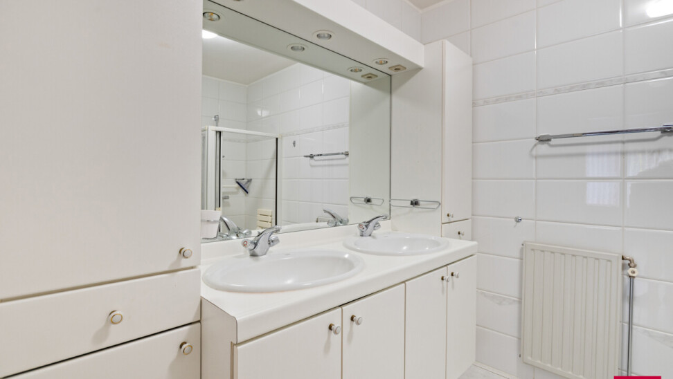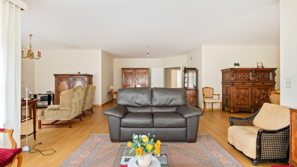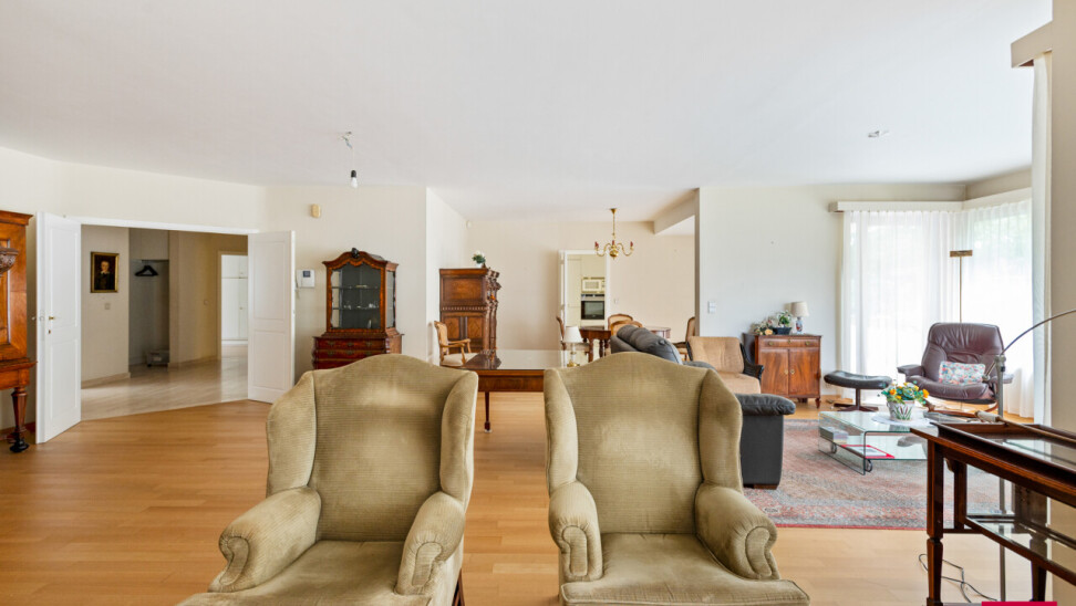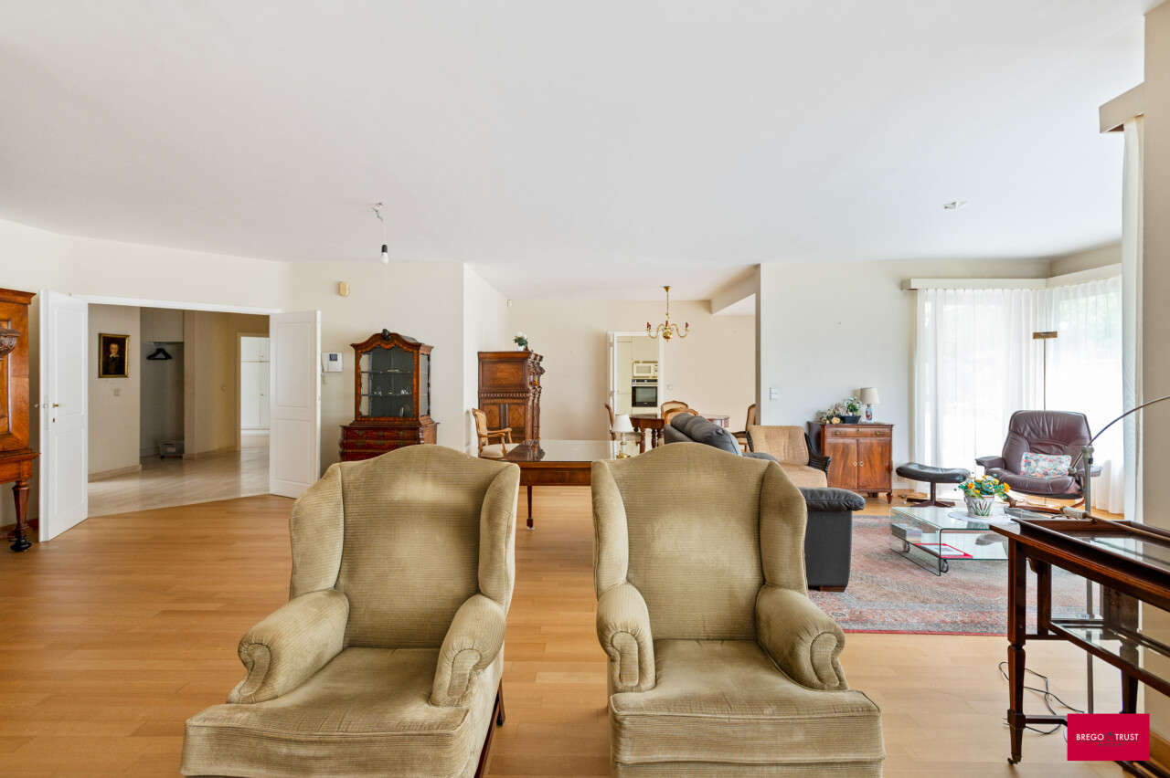 Dit uitzonderlijk appartement van maar liefst 204 m² combineert een zee van ruimte met een overvloed aan natuurlijk licht. Gelegen op de eerste verdieping van een verzorgd gebouw, geniet u hier van een stijlvolle en comfortabele thuis waar elk detail bijdraagt aan een gevoel van rust en openheid. Bij het betreden van de ruime inkomhal ervaart u meteen de aangename, lichte sfeer. De natuurstenen vloer en de royale indeling geven een voorproef van de elegantie die de rest van het appartement te bieden heeft. Leefruimte vol daglicht De leefruimte is zonder twijfel het kloppend hart van dit appartement. Dankzij de grote raampartijen rondom baadt de ruimte de hele dag in zonlicht. De parketvloer en vloerverwarming zorgen voor een warme, huiselijke toets. Hier vloeien woon- en eetgedeelte naadloos samen tot een riant geheel, perfect om gasten te ontvangen of om zelf in alle rust te genieten. Keuken en praktische ruimtes De keuken is volledig uitgerust en aangrenzend bevinden zich een praktische ruime (koele)berging alsook een wasplaats en technische ruimte. Drie slaapkamers Het appartement beschikt over drie ruime slaapkamers. De master bedroom is voorzien van een en-suite badkamer, terwijl de overige kamers gebruik kunnen maken van een tweede badkamer. Tenslotte is er ook een apart gastentoilet aanwezig. Buitenruimte & voorzieningen Het zonnige terras vormt een heerlijke plek om buiten te ontspannen met een groen uitzicht. Daarbovenop beschikt u over een dubbele garagebox (verplicht bij aan te kopen aan €30.000) en is er een lift in het gebouw aanwezig. Ligging De ligging is ideaal: net buiten de Ring van Turnhout, met groene wandelmogelijkheden letterlijk om de hoek. Winkels, horeca en alle nodige voorzieningen bereikt u eenvoudig met de fiets. Maandelijkse kosten De gemeenschappelijke kosten bedragen ca. €300/maand. Volgende zaken zijn hierbij inbegrepen: privéwaterverbruik, poetsen van de gemene delen, ramenwasser, tuinonderhoud, lift, ...