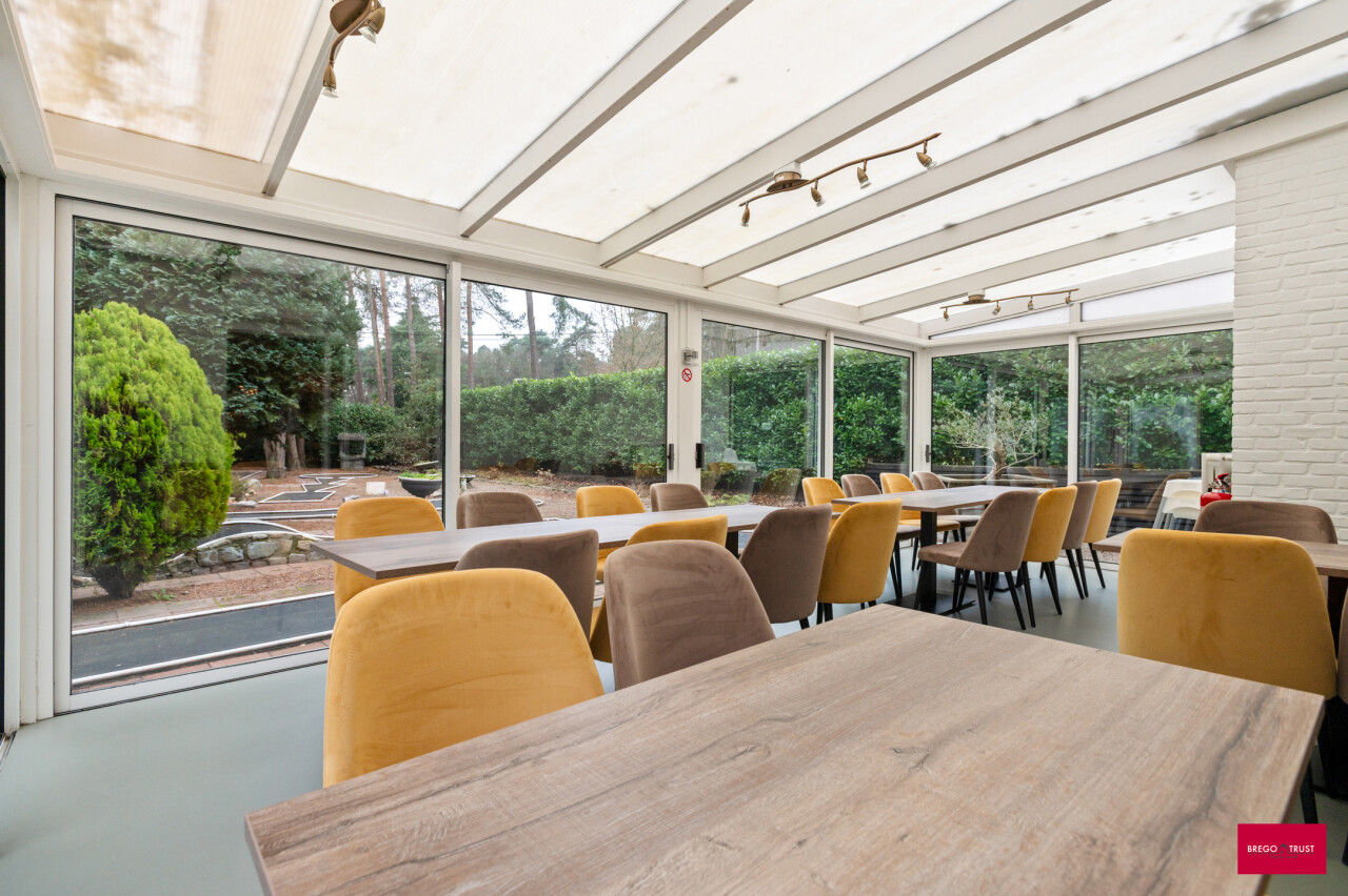 Sfeervolle polyvalente eigendom met een woon- en handelsfunctie alsook een ruime parking op eigen terrein. Uitzonderlijk gelegen in het groene hart van de woonparkzone in Oud-Turnhout op een riant perceel van 2.865m². Deze tip top verzorgde en vernieuwde woning beschikt bovendien over een extra handelsruimte bestaande uit een horecagedeelte met een prachtige sfeervolle bar, ruim zit en of verbruikssalon, eigen keukenruimte met berging en eigen sanitair. Deze polyvalente ruimtes zijn tevens ideaal te gebruiken als werk, praktijk, ontspanning of bureau ruimtes aan huis. De ruime veranda geeft een heerlijk uitzicht op de zongerichte riante tuin. De vernieuwde woning beschikt over een ruime entree met gastentoilet, aangename leefruimte, een aparte bureauruimte en een geïnstalleerde keuken voorzien van de nodige inbouwapparatuur. Boven bevinden zich 3 mooie slaapkamers met merendeels ingebouwde kasten alsook een nieuwe badkamer voorzien van inloopdouche, dubbel wastafelmeubel en toilet. Tevens beschikt de woning over een zolder via vlizotrap. Kortom een mooi verzorgd eigendom op een groene locatie met extra mogelijkheden voor wie aan huis wil werken en ontspannen, volledig omheind en voorzien van een automatische poort. Het riante perceel is gedeeltelijk voorzien van een mini-midgetgolf en is eveneens toegankelijk via een achter gelegen straatje. Kenmerken: - Uitzonderlijk aanbod met woonfunctie en handelsruimtes. - zeer recent gerenoveerd en tip top verzorgd. - perfect voor polyvalent gebruik of wie ontspanning aan huis zoekt. - conforme elektriciteit. - prachtige groene ligging nabij natuurgebied met vele wandel- en fietsmogelijkheden.